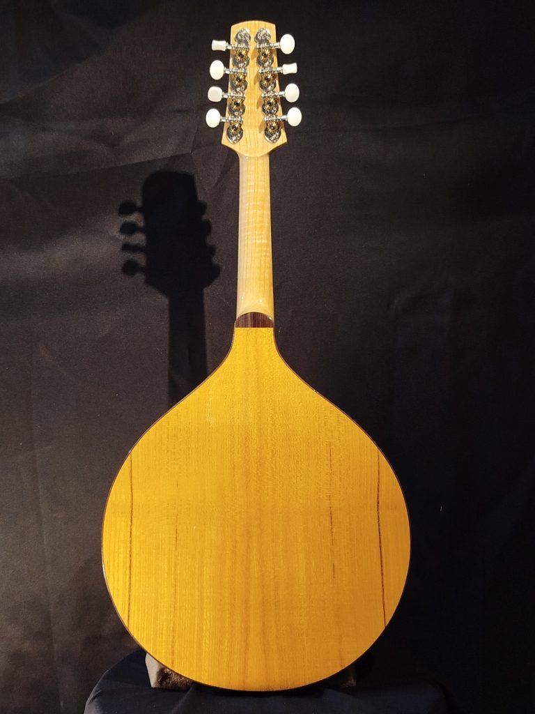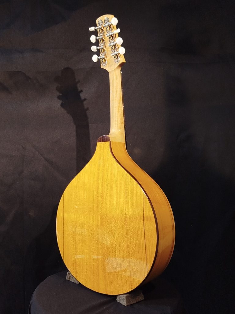 Le bois de Mûrier utilisé pour le fond et les éclisses de cette mandoline lui confère un caractère unique.